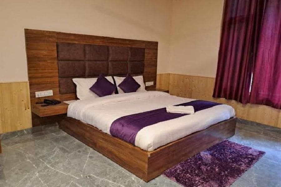 The Deluxe Room at Hotel Snow Plaza in Manali offers a spacious and elegantly designed sanctuary with stunning mountain views. Decorated in warm tones with modern furnishings, the room includes a comfortable king-size bed, a cozy seating area, and large windows that fill the space with natural light. Thoughtful amenities such as complimentary Wi-Fi, a flat-screen TV, and tea and coffee-making facilities provide added convenience, while the en-suite bathroom features premium toiletries for a relaxing experience. Ideal for couples or solo travelers, the Deluxe Room combines comfort and style, making it a perfect choice for a rejuvenating stay in Manali.